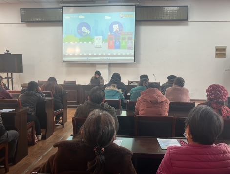 活動現(xiàn)場村民、小區(qū)居民、保潔人員、志愿者參會,志愿者通過PPT播放的方式為居民講解垃圾分類知識,讓居民了解到怎么分、如何分,志愿者面對面講解,并分發(fā)垃圾分類宣傳資料,以引導(dǎo)居民正確處理生活垃圾。、