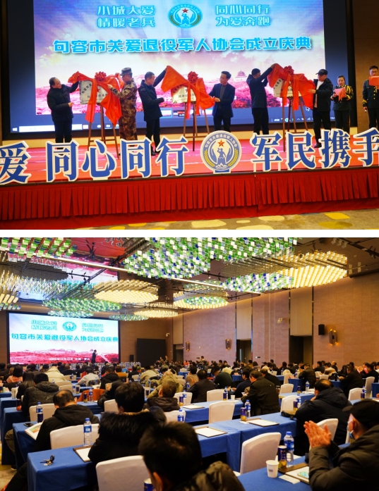 茅山,是一座英雄的山。7000多名革命先烈的鮮血灑在了蘇南這塊熱土上,灑在了茅山這片青山綠水間;茅山,是一座紅色的山。各地黨委、政府通過打造“鐵軍營”“紅色記憶”“黨史學(xué)習(xí)教育館”,把紅色資源與景點(diǎn)景區(qū)、美麗鄉(xiāng)村結(jié)合起來,展現(xiàn)紅色遺跡;茅山,更是一座不朽的山。新中國成立后,句容市優(yōu)秀兒女高擎紅色的旗幟,為立國威、壯軍威奉獻(xiàn)青春與熱血。為了將習(xí)近平總書記關(guān)于“讓軍人成為尊崇的職業(yè)”的要求落到實(shí)處,句容市120多位退役軍人企業(yè)家發(fā)起成立了句容市關(guān)愛退役軍人協(xié)會(huì)。為了向社會(huì)各界展示協(xié)會(huì)的創(chuàng)辦過程,協(xié)會(huì)舉行了簡樸而熱烈的慶典。武警江蘇總隊(duì)原總隊(duì)長顧惠琪將軍,武警湖北總隊(duì)原副政委陸令壽大校,原解放軍新疆某邊防團(tuán)團(tuán)長、鎮(zhèn)江市公安局黨委委員陳憲根,參加過對(duì)越自我反擊戰(zhàn)的《解放軍報(bào)》戰(zhàn)地記者李青云大校,全國模范退役軍人、第八屆江蘇省道德模范於如桂,全國模范退役軍人、江蘇華騰軍創(chuàng)科技園有限公司董事長潘維伍,句容市退役軍人事務(wù)局局長段續(xù)文,6名參加過解放戰(zhàn)爭、抗美援朝、“兩山”輪戰(zhàn)的老兵,句容市各鄉(xiāng)鎮(zhèn)、街道退役軍人服務(wù)站站長,來自南京、江陰的公益慈善組織和協(xié)會(huì)會(huì)員企業(yè)負(fù)責(zé)人共計(jì)200多人見證了這一盛會(huì)。