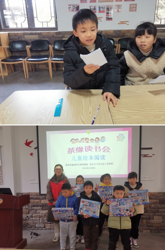 書籍,是人類寶貴的精神財(cái)富。為進(jìn)一步激發(fā)社區(qū)兒童的閱讀興趣,借助繪本閱讀為兒童形成良好的閱讀習(xí)慣,提高他們的閱讀能力和表達(dá)能力,2024年1月6日,南京市江寧區(qū)淳化街道茶崗村新時(shí)代文明實(shí)踐站聯(lián)合星火社工,在大花區(qū)議事園開展“茶緣讀書會(huì)-兒童繪本閱讀”主題活動(dòng)。