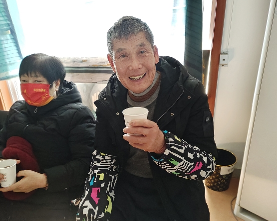隨后工作人員端起煮好的冬季養(yǎng)生茶送到每一位殘疾人的手中,大家邊喝邊露出燦爛的笑容。