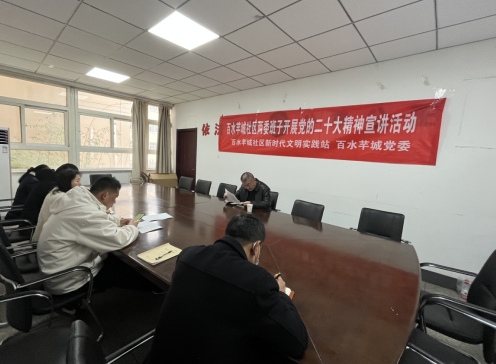 為深入學習黨的二十大精神,1月11日,百水芊城社區(qū)黨委依托社區(qū)新時代文明實踐站組織社區(qū)兩委班子人員開展集中學習黨的二十大精神。