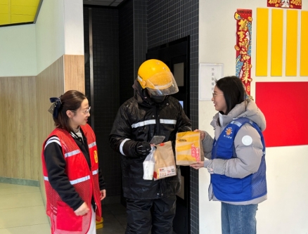 一大早,志愿者們就開(kāi)始準(zhǔn)備臘八粥,將十多種食材清洗干凈放入鍋中,經(jīng)過(guò)一段時(shí)間的燉煮,臘八粥的香氣彌漫在空氣中。黨員志愿者和職工志愿者提前將部分粥裝在盒里,準(zhǔn)備發(fā)放給正在辛苦工作的外賣員、快遞員和環(huán)衛(wèi)工人。“小哥辛苦了,來(lái)喝碗熱乎乎的臘八粥吧!”隨著志愿者的招呼,先后為三十余名“寧小蜂”們送上臘八粥。
