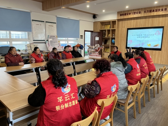 會上,“芊云匯”志愿者領(lǐng)頭人華彥阿姨向現(xiàn)場志愿者骨干們提出“掌云+積分制”工作要繼續(xù)深度了解,大家要開拓思維,通過服務(wù)創(chuàng)新,結(jié)合群眾需求及特長,有效利用居民業(yè)余時間,以服務(wù)兌換服務(wù),同時開通獎勵機(jī)制,促進(jìn)居民參與社區(qū)治理的力度,并根據(jù)社區(qū)實際情況,每個人在日常工作及服務(wù)百姓中充分調(diào)動群眾積極性,注重優(yōu)秀群眾和志愿者骨干的培育,引領(lǐng)群眾善行義舉好風(fēng)氣。