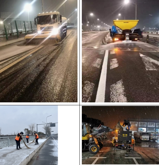 雨雪飄飄、寒風(fēng)瑟瑟,風(fēng)雪中濱江開發(fā)區(qū)工作人員不畏嚴(yán)寒,不斷對轄區(qū)內(nèi)高架橋梁、江寧西站出入口、公交站臺、坡道、菜場周邊等車流人流較大區(qū)域播撒融雪劑;并按照“機(jī)械掃雪為主、人工掃雪為輔”原則,進(jìn)行除雪作業(yè),做到人力物力科學(xué)配置。伴著作業(yè)車輛雪中轟鳴,除雪工作得到了高質(zhì)高效推進(jìn),潔白的路面很快露出了本來顏色,路面上的車輛行駛狀態(tài)趨于正常。