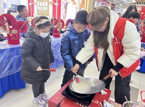 現(xiàn)場制作冰糖葫蘆環(huán)節(jié),大家更是熱情高漲。熬制好的糖稀晶瑩剔透,山楂穿成串后裹上甜蜜蜜的糖稀,一串串誘人的冰糖葫蘆便制作完成?,F(xiàn)場還設(shè)有品嘗區(qū),居民們可以一邊品嘗自己親手制作的冰糖葫蘆,一邊交流分享過年的喜悅和期待。