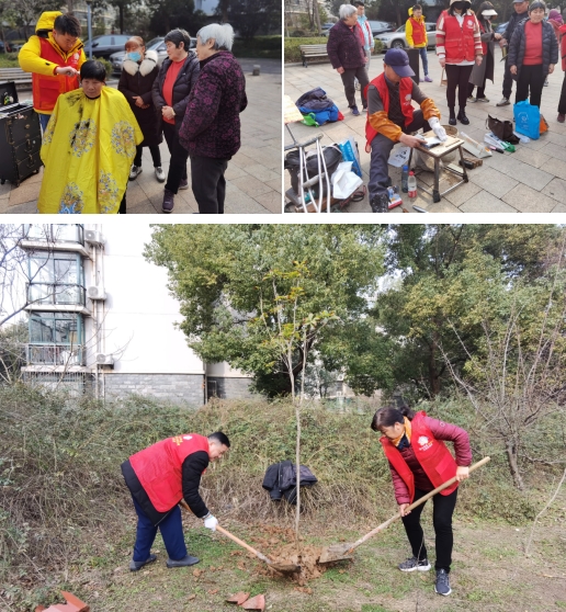 植樹現(xiàn)場,退休黨員們紛紛熱情高漲,一派熱火朝天的景象,揮鍬鏟土、培土圍堰、提水澆灌、扶樹正苗,合力栽下蜜桔、梔子花等十幾棵樹苗,為小區(qū)綠化再補(bǔ)新裝。此外還設(shè)有健康義診、義務(wù)理發(fā)、磨刀、反電詐宣傳等攤位,居民絡(luò)繹不絕。在健康義診區(qū),醫(yī)生們認(rèn)真問診,耐心解答,為居民提供了科學(xué)的健康指導(dǎo);磨刀、理發(fā)等便民服務(wù)攤位也是“生意火爆”,居民將自家用鈍的菜刀拿出來,不一會兒,刀具被磨得光亮如新;義剪師傅為居民系好圍布,按照老人的期望進(jìn)行“私人訂制”,經(jīng)過一番仔細(xì)修剪,頭發(fā)都變得十分干凈整齊。