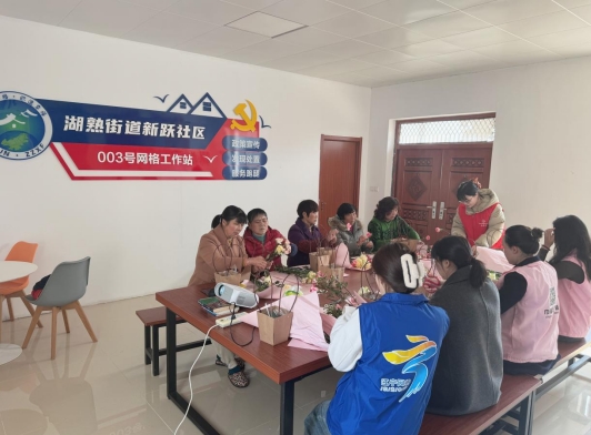 新躍社區(qū)舉辦婦女節(jié)插花活動,網格傳遞