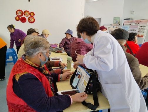 李醫(yī)生就膽固醇、高血壓等常見病特點、預防知識進行了深入淺出的講解。她列舉案例,聲情并茂,提醒大家注意合理安排飲食、保持良好的心態(tài)、不盲目吃藥、濫用保健品,并建議根據(jù)自身情況合理安排一些戶外運動,舒展身心、汲取自然活力,增強機體抵抗能力。大家聽得專心致志,津津有味。隨后,李醫(yī)生團隊在現(xiàn)場為老人開展血糖血壓測量,認真詢問,耐心細致地為他們解釋檢查結(jié)果、身體狀況、飲食安全、合理用藥等問題,并了解大家既往使用藥物情況,叮囑需要進一步服藥治療的患者定期去醫(yī)院檢查。