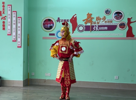 金全福老師身著華麗戲服,手執(zhí)金箍棒,生動再現(xiàn)了美猴王孫悟空的智勇形象。他的精彩演出不僅讓老人們欣賞到了中華傳統(tǒng)戲曲的魅力,更在他們心中種下了樂觀向上的精神力量。他借助國學(xué)藝術(shù)的力量,將歡笑和溫暖送進(jìn)每一位老人的心田,讓他們在平凡的日子里感受到生活的多彩與希望。