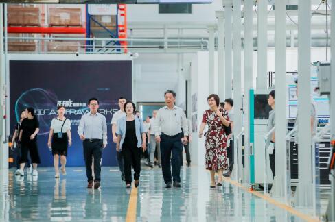 中國汽車工業(yè)協(xié)會原常務(wù)副會長、中國汽車動(dòng)力電池產(chǎn)業(yè)創(chuàng)新聯(lián)盟理事長董揚(yáng)(前排右二),中國汽車工業(yè)協(xié)會專務(wù)副秘書長、汽車動(dòng)力電池產(chǎn)業(yè)創(chuàng)新聯(lián)盟秘書長許艷華(前排右三)等領(lǐng)導(dǎo)參觀重塑科技常熟產(chǎn)業(yè)化基地產(chǎn)線