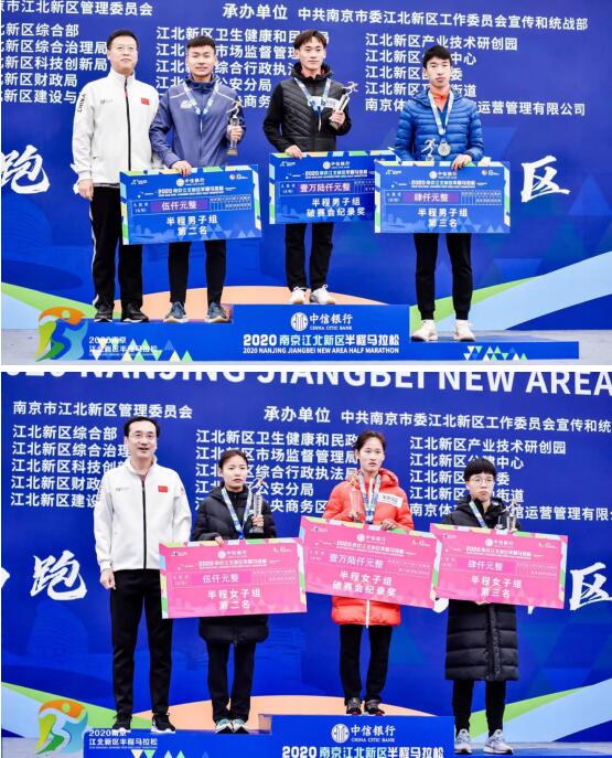 伴隨著青春活力的快閃舞蹈和激昂的國歌合唱,4500名跑者用腳步暢跑江北,以行動樂享新區(qū)。經(jīng)過激烈的角逐,李恩基獲得半程男子組冠軍,成績?yōu)?:07:50 。半程女子組冠軍由王佳莉以1:16:40的成績摘得。值得一提的是,此次中信銀行·2020南京江北新區(qū)半程馬拉松男女組冠軍成績均打破賽會紀(jì)錄。在首屆賽事的基礎(chǔ)上,本屆賽事在獎項設(shè)置上也更加豐富,不僅新增了破賽會紀(jì)錄獎,還新增了跑團賽中賽獎,給更多非專業(yè)跑者一爭殊榮的機會。