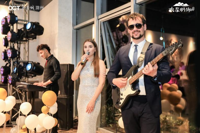 項目領(lǐng)導(dǎo)及小鎮(zhèn)餐廳總經(jīng)理上臺共同開啟閃光生活節(jié)開幕暨小鎮(zhèn)餐廳開業(yè)儀式,當(dāng)啟動裝置被點亮 在場嘉賓的內(nèi)心猶如滾滾浪花,久久不能平靜,華僑城·歡樂明湖閃光生活正式揭幕。