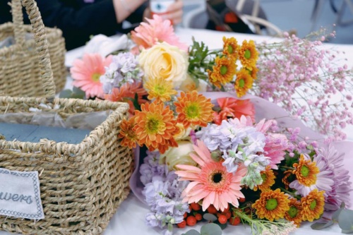 花藝活動(dòng)現(xiàn)場(chǎng)的每個(gè)人親自動(dòng)手,選擇自己喜歡的花材,精心構(gòu)思創(chuàng)意、親手細(xì)致制作,收獲了一份特別的花籃。面對(duì)自己的花藝作品,每個(gè)人臉上都洋溢著甜蜜的微笑,在芬芳四溢的環(huán)境中陶冶了情操,釋放了壓力。