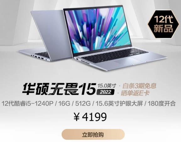 華碩無(wú)畏15 2022酷睿版 低至4199元