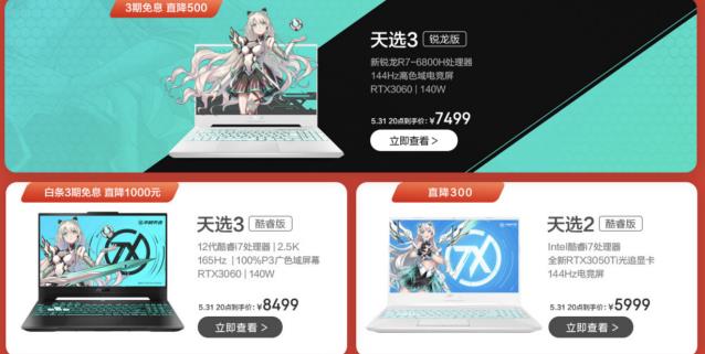 大眾玩家首選滿血3060游戲本華碩天選3銳龍版,配置144Hz高刷電競(jìng)屏,5月31日晚8點(diǎn)直降500元,到手僅需7499元更享3期免息;配置12代酷睿、滿血3060及2.5K 165Hz P3色域電競(jìng)屏的天選3直降1000元,到手8499同樣享3期免息;最超值的天選2游戲本,RTX 3050+144Hz高刷屏,入手低至5999元,天選老婆輕松帶回家!